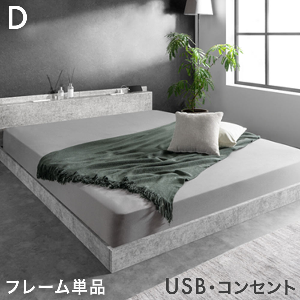 ■ベッド クイーン フレーム 単品 USB・2コンセント & スマホスタンド付 フロアベッド ローベッド ベット ベッドフレーム クイーンベッド ヘ