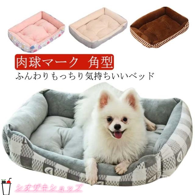 ■送料無料 ペット ベッド ふわふわ おしゃれ 犬用 猫用 小型犬 通年 春用 夏用 秋用 冬用 肉球マーク 角型 丈夫 パピー 成犬 シニア 老犬