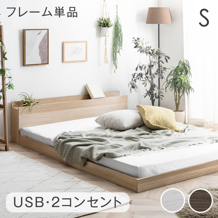 ■【26日9:59迄!P5%還元】 ベッド シングル USB・2コンセント スマホスタンド付 ローベッド ベット ベッドフレーム シングルベッド ヘッド