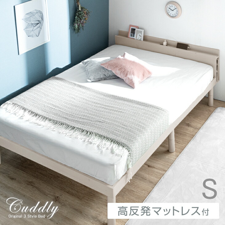 ベット マットレス付き シングルベッド シングルサイズ 棚 宮棚 シングル コンセント USBポート 極厚 22cm ローベット 北欧 宮棚【商品番号:49600936】