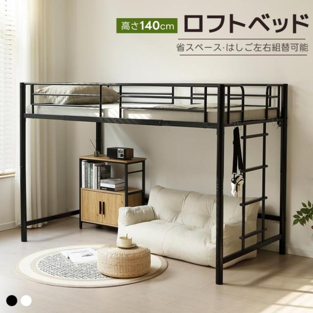 ロフトベッド シングル 高さ140cm パイプベッド ベッド 北欧 ロータイプ スチール 子供ベッド 子供部屋 耐震 頑丈 省スペース