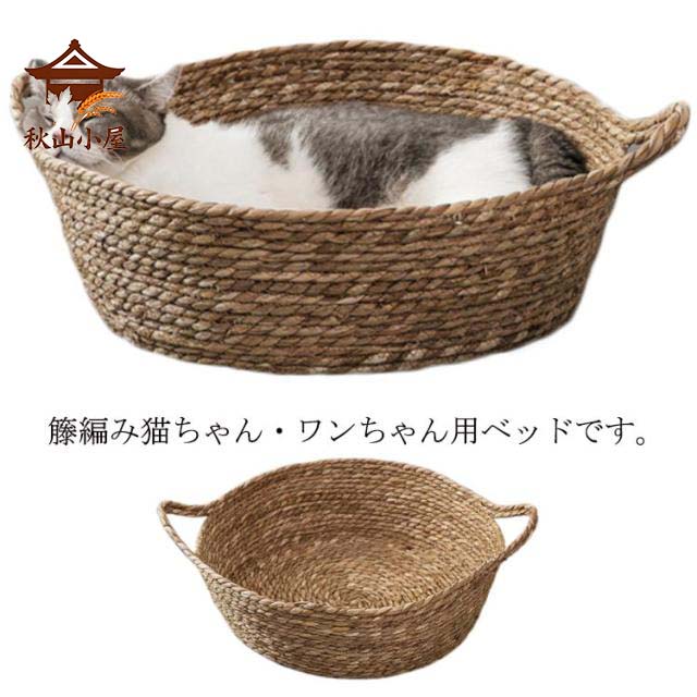 ■猫ベッド 籐編み カゴ バスケット 猫ベッド 犬ベッド ペットベッド 天然素材 籠 丸型 ラウンド かご ベッド 猫用ベッド 犬用ベッド キャ