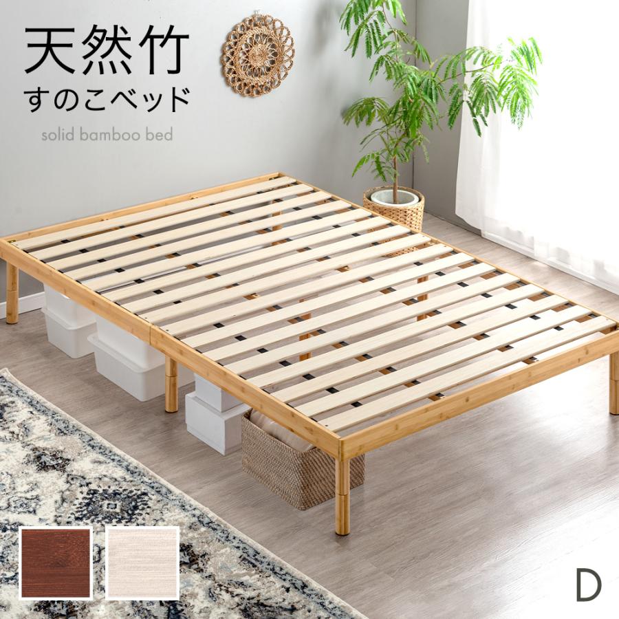 竹 ベッドフレーム 3段階 高さ調節 すのこ すのこベット ベットフレーム ローベット ベット ヘッドレス バンブーベッド 竹製 木製 頑丈 D ダブル 北欧 おしゃれ【商品番号:91900003】