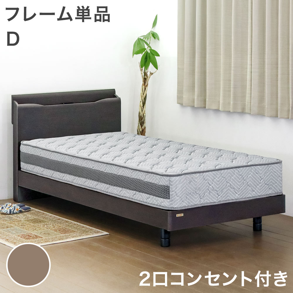 ■【26日9:59迄!P5%還元】 天然木 オーク 宮付き ベッド 2口コンセント付 ダブル ベッドフレーム ベットフレーム 単品 高さ3段階 シングル