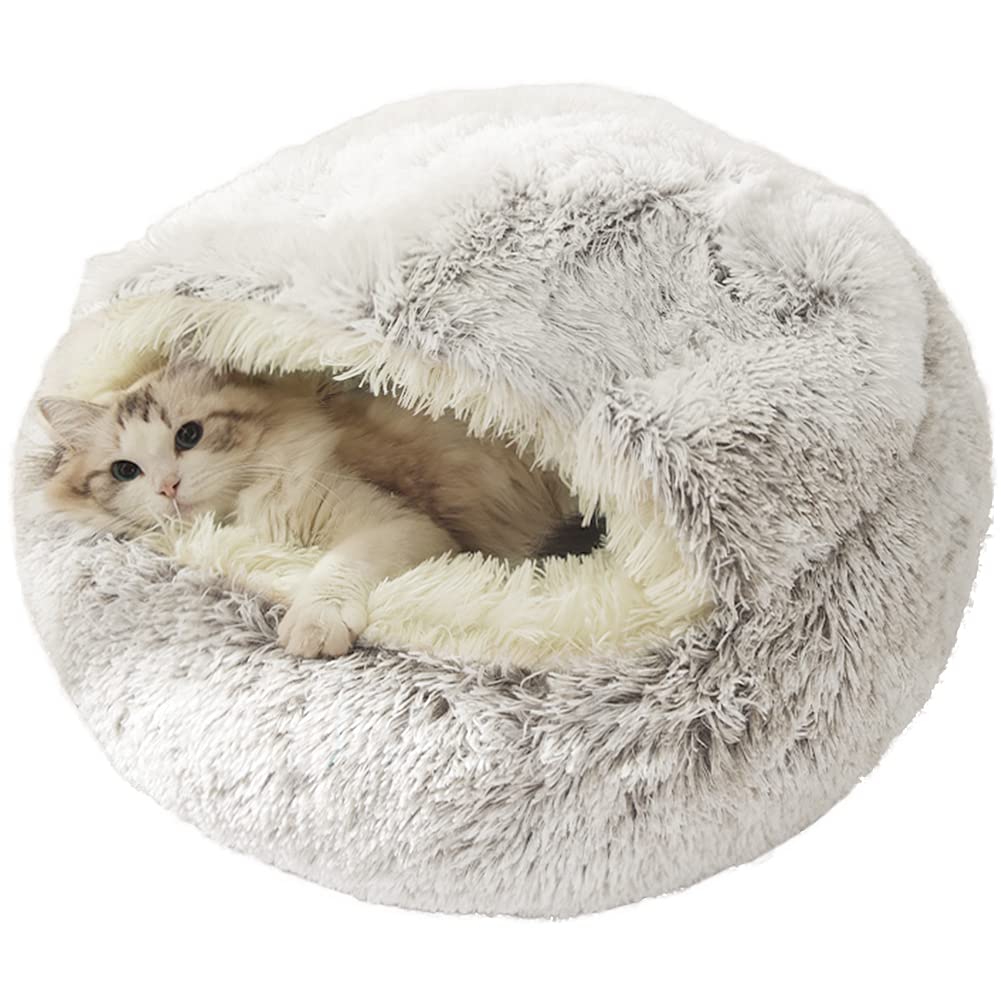 ■zurzur 猫 ベッド ハウス ドーム型 暖か 丸型 ふわふわ もこもこ 可愛い ぐっすり眠る 柔か 保温 ペット クッション 滑り止め 洗え
