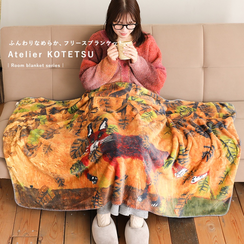 ■『アトリエKOTETSUフリースブランケット_キツネ』【メール便不可】【50】[ブランケット ライフスタイル雑貨 膝掛け 毛布 掛け布団 お昼寝