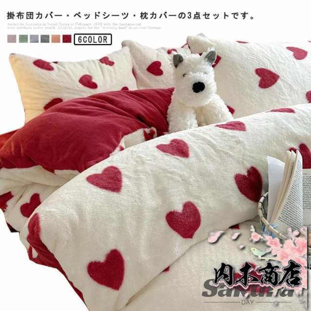 布団カバーセット 秋冬 かわいい 冬用 カジュアル 寝具カバー 掛けカバー 敷き布団カバー シングル 厚手 フラットシーツ フェイクファー ハート柄 洗える 3点セット 暖かい 防寒対策 枕カバー 掛け布団カバー ふわふわ ベッドシーツ