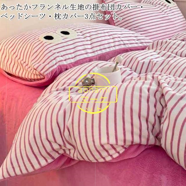 枕カバー 掛けカバー ふとん シングル セット 掛け布団カバー 布団カバー 洗濯可 掛カバー 寝具カバー 秋冬 カジュアル 【送料無料】 布団カバー 敷き布団カバー ふわふわ 暖か 寒さ対策 3点セット 厚手 あったか フランネル 防寒対策 フラットシーツ 柄 ベッドシーツ 冬用