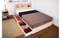■【ふるさと納税】【組立サービス付】A322 セミダブルサイズ 棚コンセント引き出し付きカントリー調ベッド 国産ポケットコイルマットレ