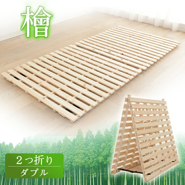 ■2つ折りすのこベッド ダブル D すのこ 折りたたみ ベッド 檜 ベット 通気性 プラザセレクト 送料無料