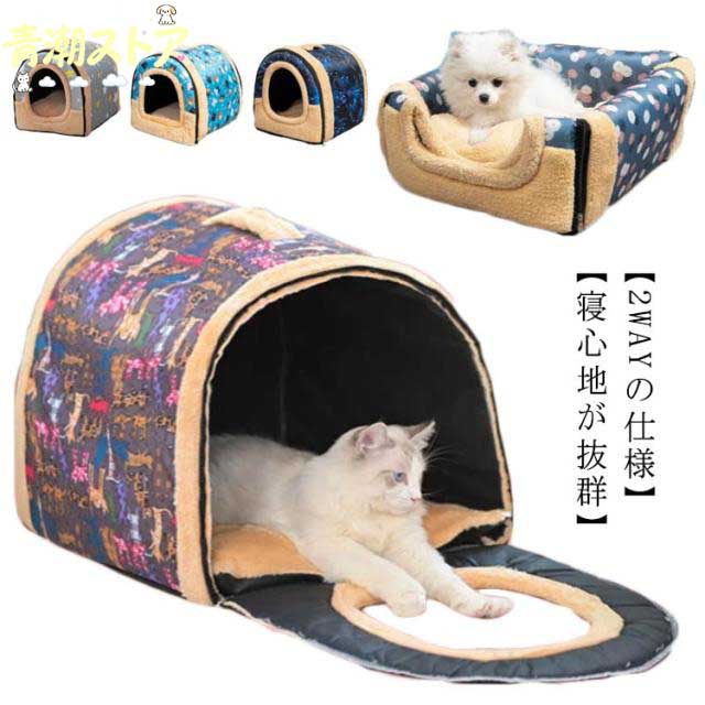 ■Sサイズ Mサイズ ドーム型 犬 猫 ペットハウス 室内 ベッド 2WAY 折りたたみ 秋冬 猫寝袋 ペットベッド ふわふわ クッション付き 暖か