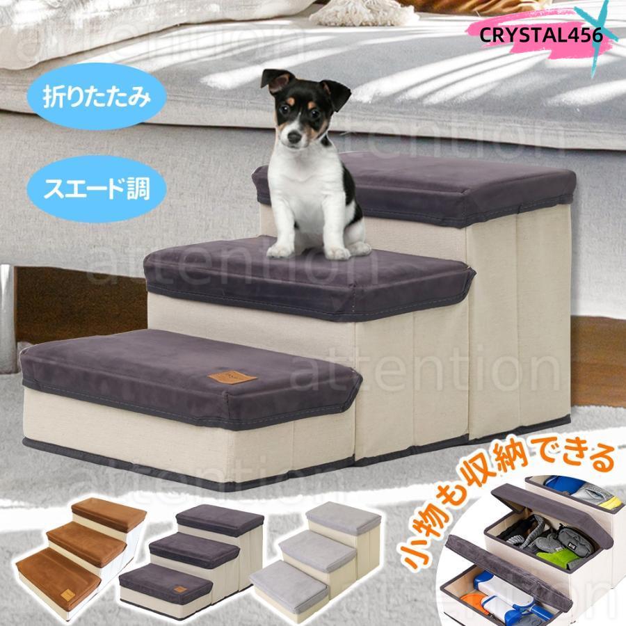 ■犬 階段 3段 ドッグステップ 収納 ソファー 折りたたみ ペットステップ ドックステップ スエード調 ベッド ステップ 犬用階段 犬用 段差