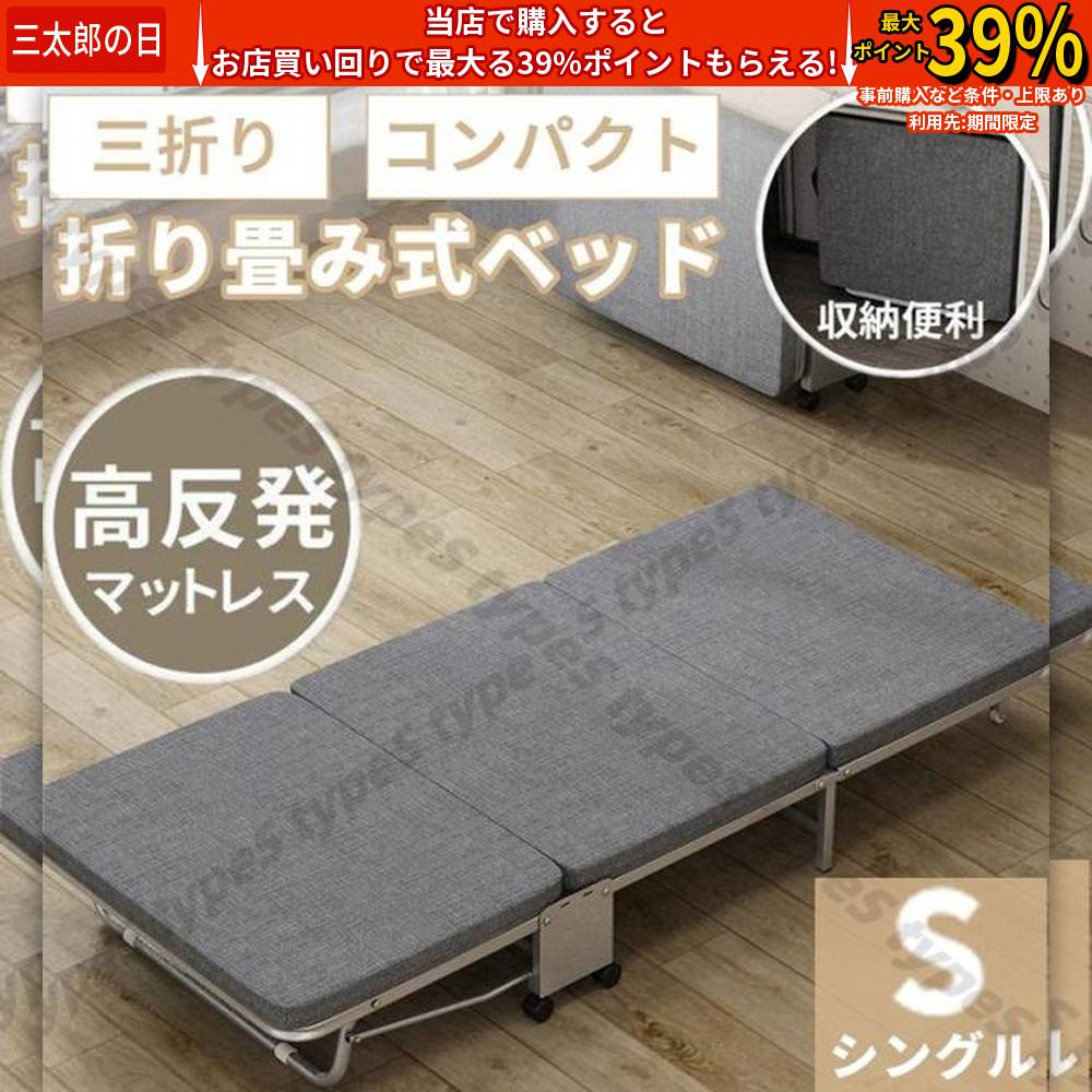 ■おりたたみベッド コンパクト 折りたたみ ベッド シングル 簡易ベッド 折り畳み ベッド マットレス付き 組立不要 完成品 キャスター付 介
