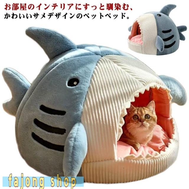 ■かわいいサメハウス ドーム型 犬 猫 ハウス ベッド マット ペットベッド ドームハウス 折りたたみ 猫ハウス 犬ハウス 室内 冬 ふわふわ