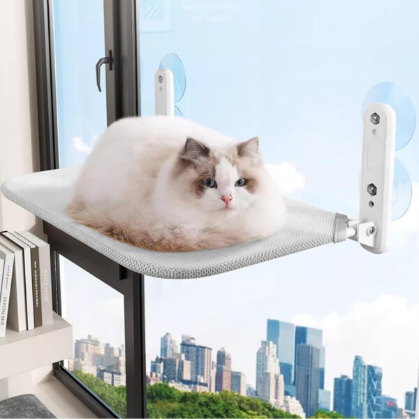 ■maodurful 猫 窓 ベッド ハンモック 耐荷重20kg 強力吸着で多猫対応 折りたたみ 猫ベッド ストレス解消/日光浴/休憩用 四季兼用 (グレー,