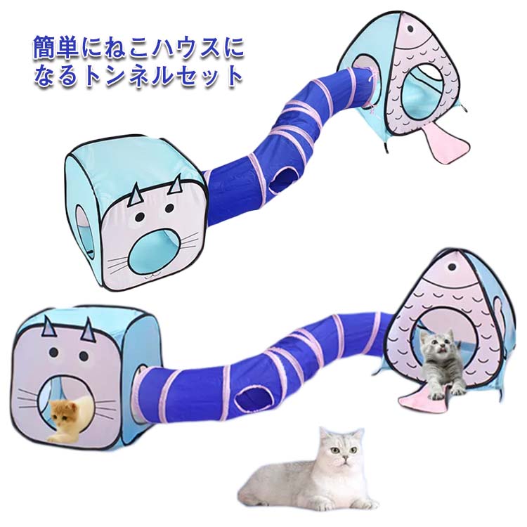 ■猫トンネル 猫グッズ キャットプレイキューブ 3点セット キャットハウス キャットテント ベッド 折りたたみ コンパクト かわいい ストレ