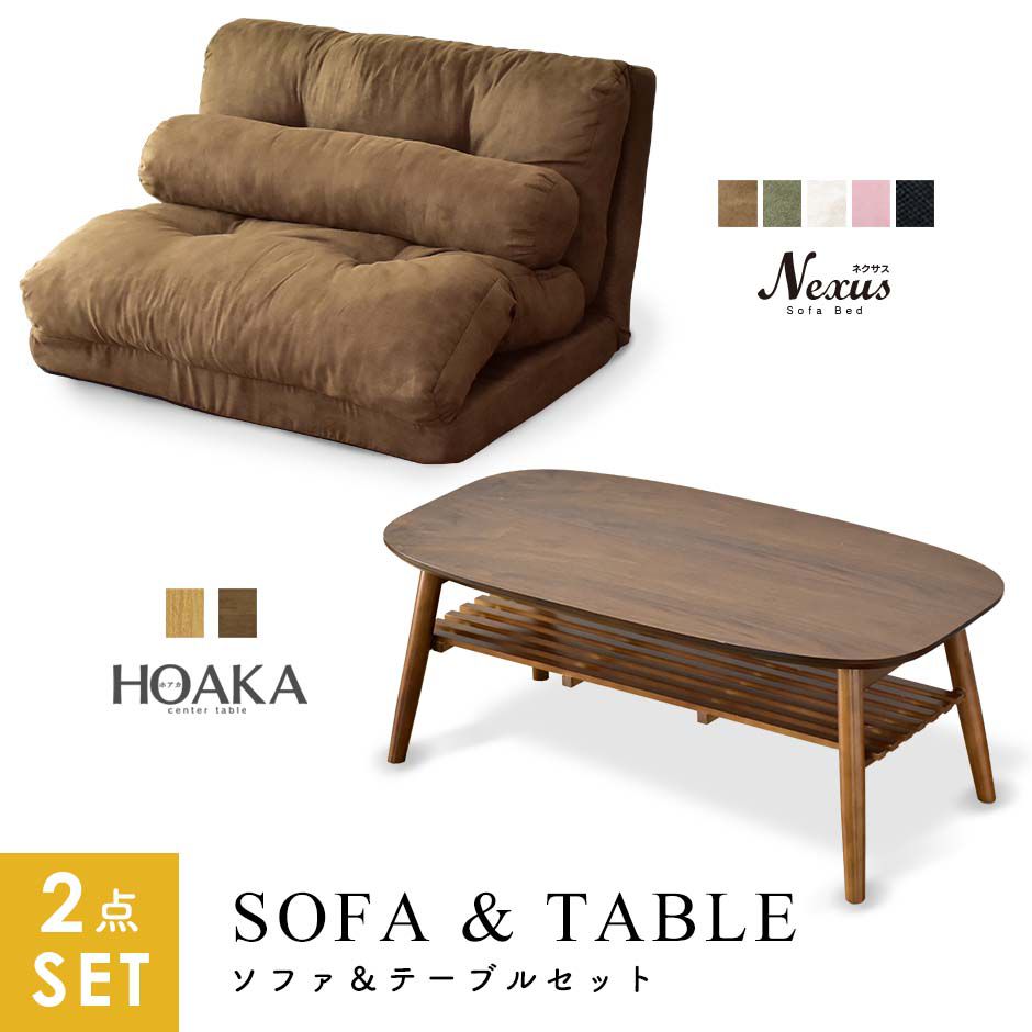 ■ソファベッド センターテーブル セット ソファ ベッド ローソファ リクライニング 折りたたみ 2人掛け 楕円形 木製 棚付き 折り畳み 西海