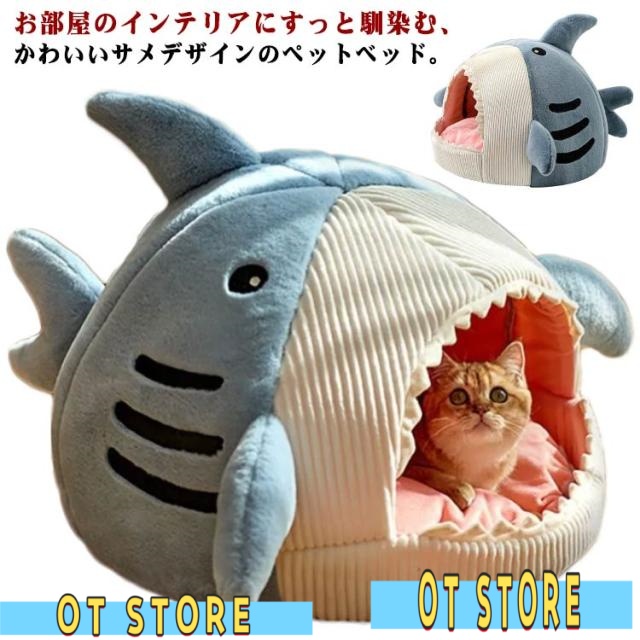 ■かわいいサメハウス ドーム型 犬 猫 ハウス ベッド マット ペットベッド ドームハウス 折りたたみ 猫ハウス 犬ハウス 室内 冬 ふわふわ
