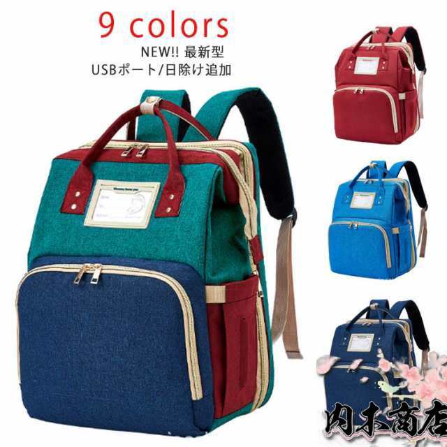 ■マザーズリュック 折りたたみ 背面ポケット ベビーベッド リュックサック 2way マザーズバッグ ベッド リュック トート 多機能 バックパ