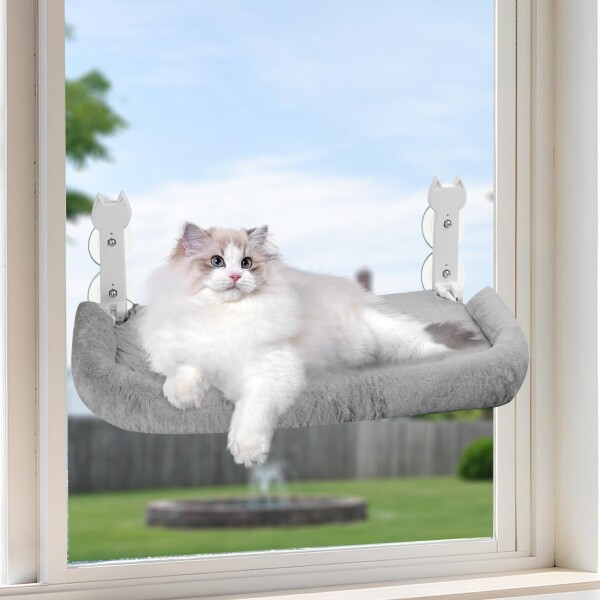 ■猫 窓用ハンモック 折りたたみ 猫 ベッド 窓 吸盤 ねこベッド ペットベッド 窓 両面で使用 洗える 組立簡単 グレー 猫窓ベッド 吸盤式 見