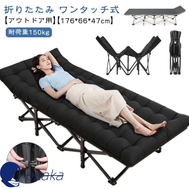 アウトドアコット ワンタッチ式 176*66*47cm 折りたたみ ベッド アウトドアベット 簡易ベッド コット アウトドア ベッド 軽量 コンパクト キャンプ ベッド キャンプコット 折りたたみベッド キャンプ用品 防災グッズ 収納袋付 レジャー 折り畳み ベット 非常用