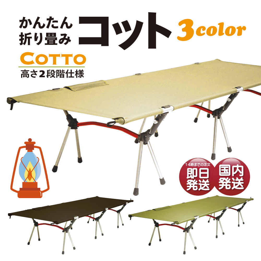 ■コット フォールディング コット 2way ハイコット ローコット アウトドア キャンプ コット 軽量 折りたたみ ベッド テント ポケット付き