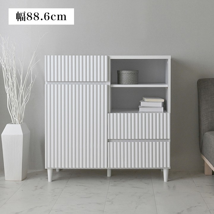 ■キャビネット ルーター収納 木製 白 サイドボード 引き出し リビング 収納 リビングボード 幅90 収納棚 扉付き 大容量 脚付き 奥行40 ワ