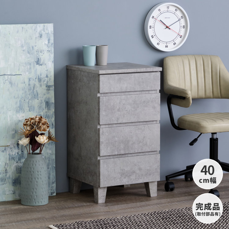 チェスト リビングチェスト タンス リビング 収納 棚 木製 幅40 4段 コンパクト おしゃれ 北欧 シンプル コンクリートグレー 脚付き 引き出し 小物収納 収納チェスト リビング収納 RYON40