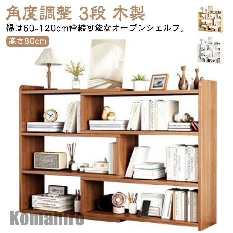 ■オープンシェルフ 伸縮 収納棚 本棚 収納ラック スリム 薄型 伸縮ラック 角度調整 リビング 収納 シェルフ ラック 低め 低い 3段 木製