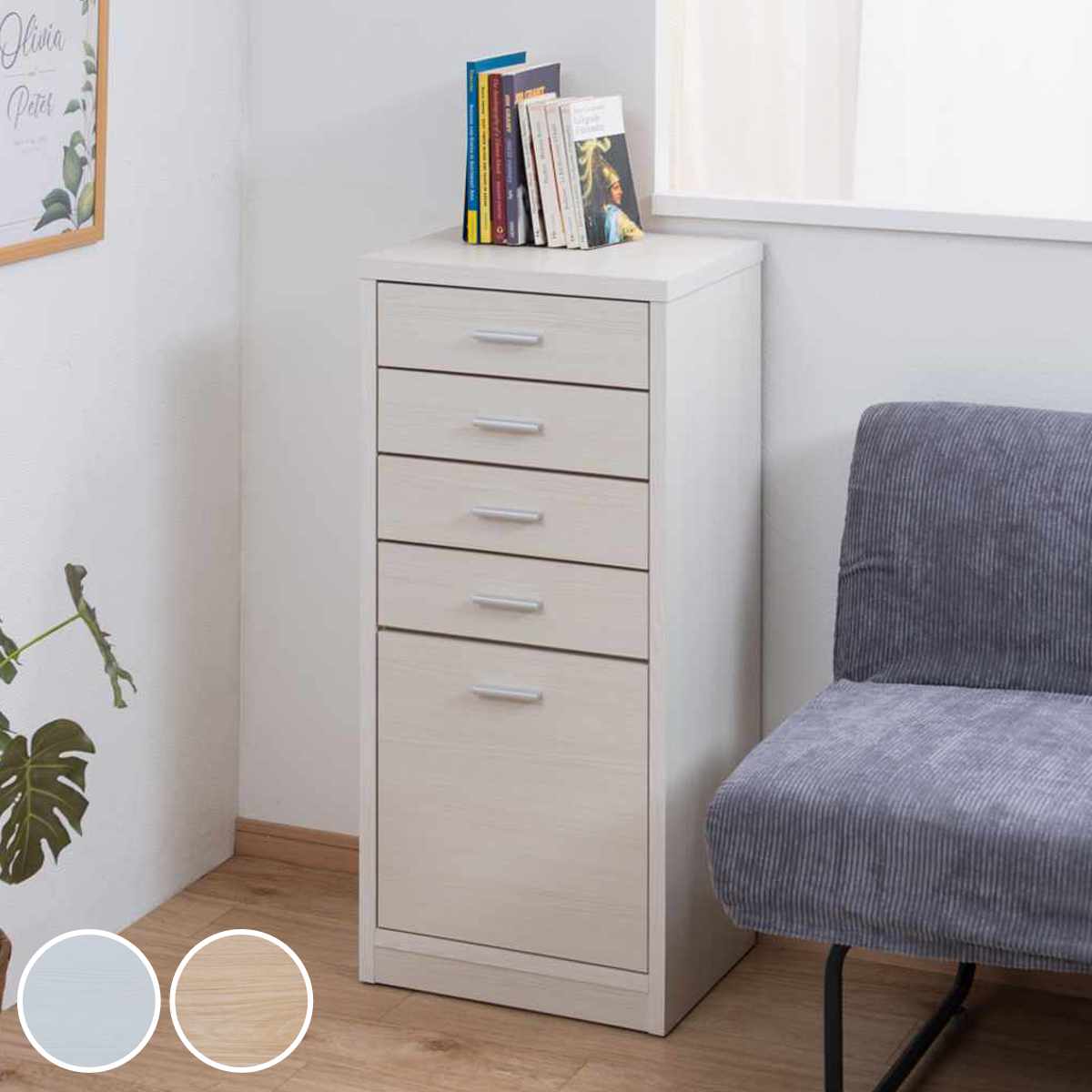 ■カウンター下収納 幅40cm チェスト 5段 日本製 完成品 ( カウンター下 リビング 収納 キッチン収納 収納棚 モダンナチュラル 薄型 引出