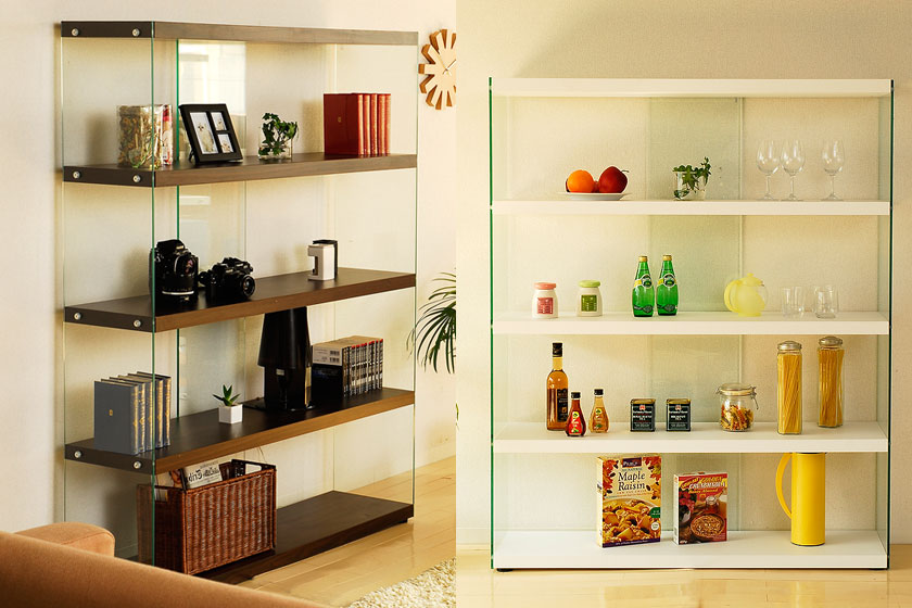 ■ラック 収納棚 おしゃれ 4段 リビング 収納 棚 ガラス シェルフ ディスプレイラック 間仕切り スリム 北欧 モダン シンプル ワイド 飾り
