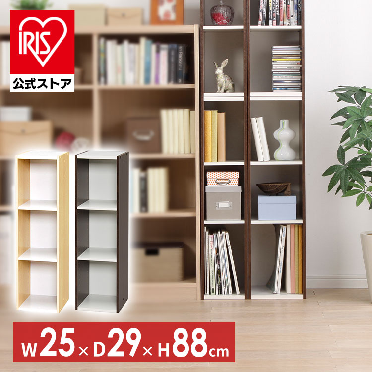 お部屋のちょっとした隙間を有効活用できる、奥行29×高さ88cmタイプの木製ラックです。幅は15・20・25・30・35の5タイプからお好みのものを選べます。UB-9025は【幅約25cm】です。付属の連結用ボルトを使って、商品同士を縦方向・横方向に連結して使用することも可能です。※縦方向の連結は、安全のため、2つまでしかできません。また、棚が可動式になっているので、収納物に合わせて約3.2cmのピッチで棚の高さを調節できます。(アイリスオーヤマ)