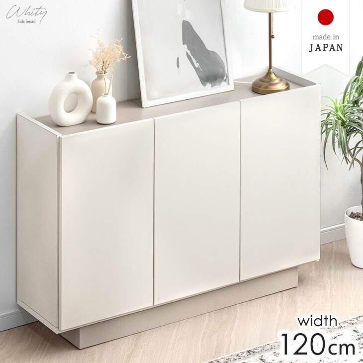 サイドボード 120cm 日本製 完成品 キャビネット チェスト サイドチェスト チェスト 収納棚 飾り棚 リビング 収納 リビング収納 収納家具 横長 ハイ 扉付き 白 ホワイト 北欧 おしゃれ【商品番号:17100084】