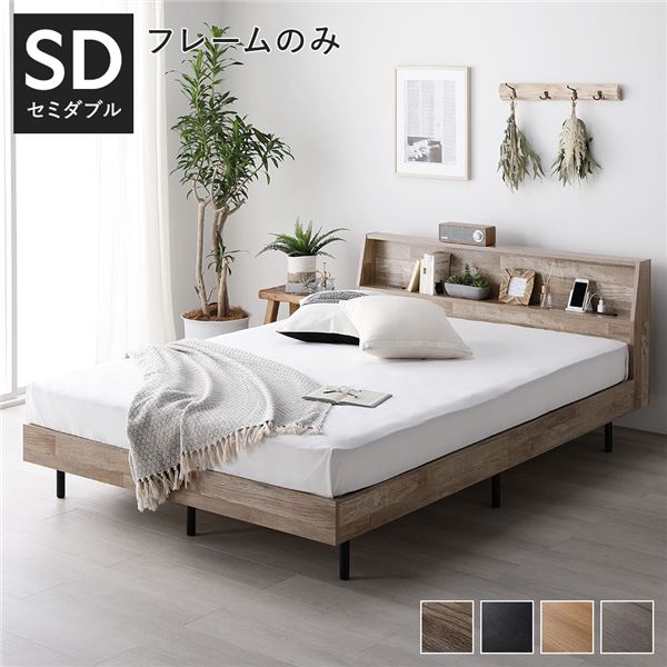 ■セミダブルベッド ナチュラル 単品 ベッド ベッドフレームのみ ヴィンテージナチュラル 棚付 宮付 コンセント付 すのこ ベット 送料無料