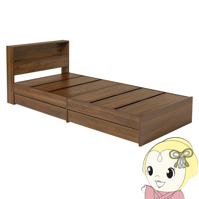 本やタブレットを収納できる宮棚付きのシングルベッド 衣類や小物などを収納できる引出し付き ●ベッドの下に容量が合計70リットルの引き出し収納付き 楽に出し入れできるキャスター付き 引出しを右側・左側どちらにも出せるように設置できます ●引き出しの反対側はオープンスペース。使用頻度が低いものを収納するのに便利 ●ベッドの周りに色々収納できる宮棚収納付き ●1500wまで使用可能な2口コンセント付き 使わないときは自動でカバーするので、ほこりやごみから保護してくれる ●第三者試験機関で700Kgの荷重テストに合格 ●床板には約3cmの間隔を作り、空気が通る設計 生産地:マレーシア製 サイズ:(約)幅98×奥行211.5×高さ76×床面高29cm 素材:主材:プリント紙化粧パーティクルボード 内寸及び補足説明:■組立式 ■2口コンセント付 ■引出2杯付 ※お客様組立て品につきましては、組み立て後に不良の連絡をされても対応ができません。組み立て前にパーツに不良・傷等がないか、必ずご確認下さいますようよろしくお願い申し上げます。 ※記載は商品仕様の一部です。仕様説明不足等の理由での返