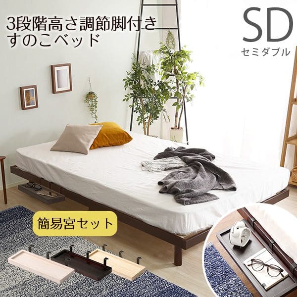 ■ベッド セミダブル すのこ パイン材 高さ調節 収納 下 木製 すのこベッド ベッドフレーム 軽い 一人暮らし ロータイプ セミダブルベッド