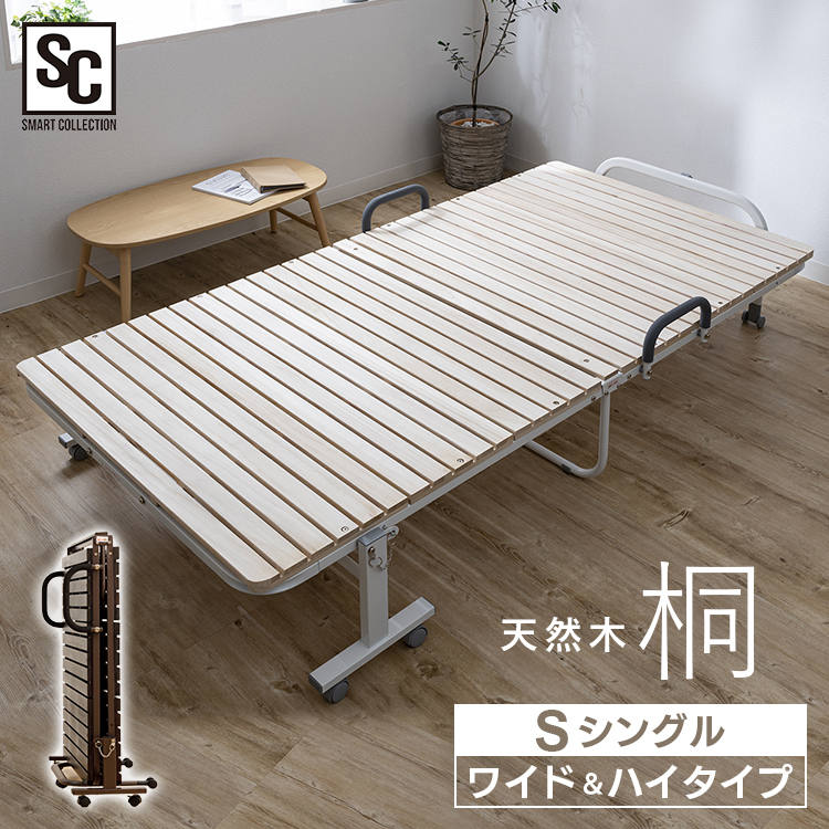 ■ベッド すのこベッド 折り畳み 折りたたみベッド シングル FDBH-1044 ハイタイプ すのこ33枚 ベッド 折り畳み すのこ 2つ折り 桐無垢材