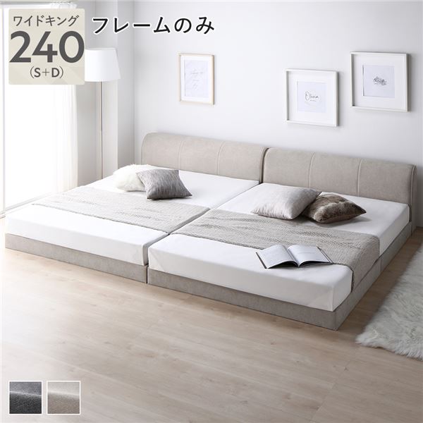 ■キングサイズベッド 単品 ファブリック ローベッド ワイド キングベッド 240 S+D ベッドフレームのみ ベージュ 連結 すのこ ベッド