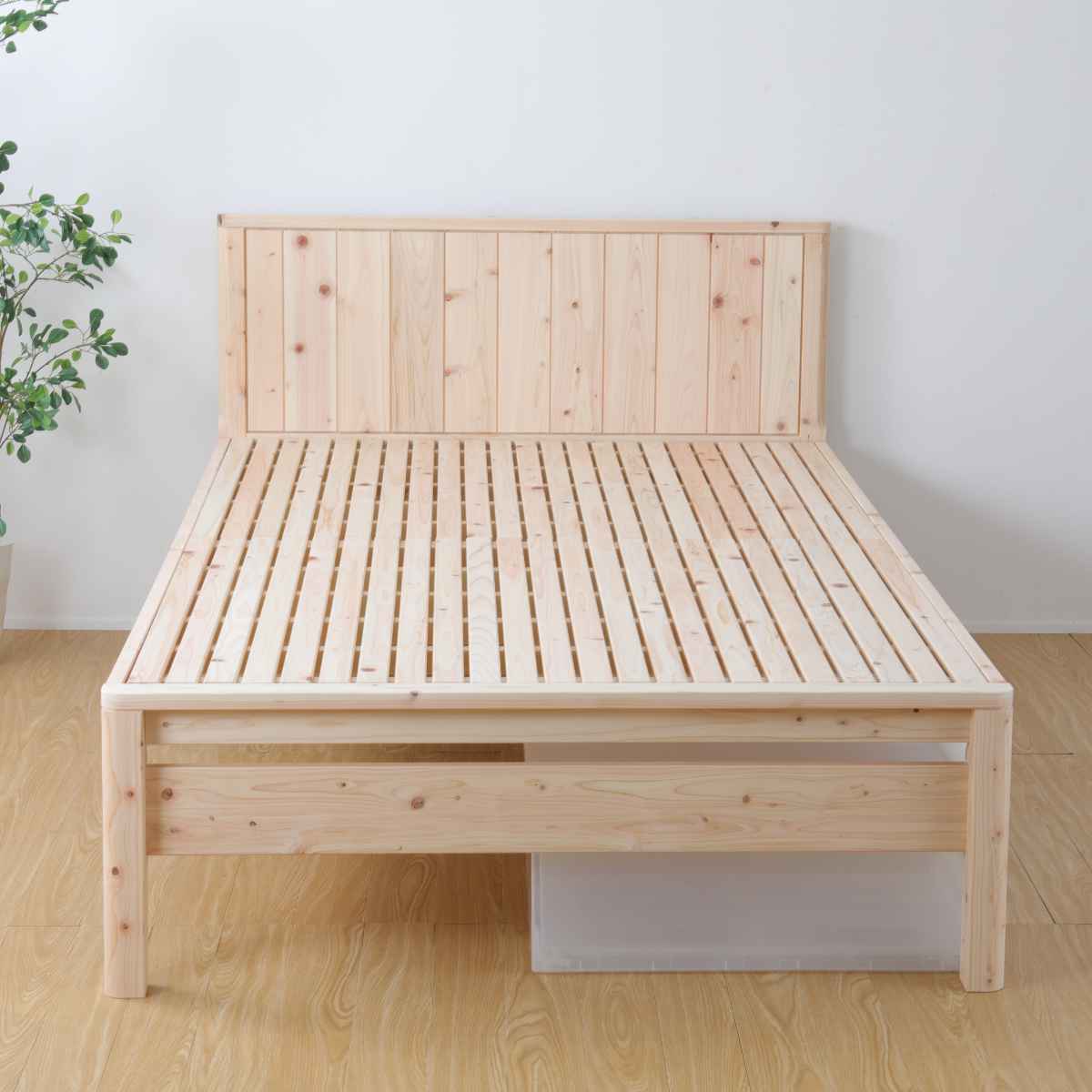 ■ダブルベッド ナチュラル 天然木 すのこ ベッド 国産 日本製 国産ポケットコイルマットレス付 ハード ナチュラル ヘッドレス 高さ調整