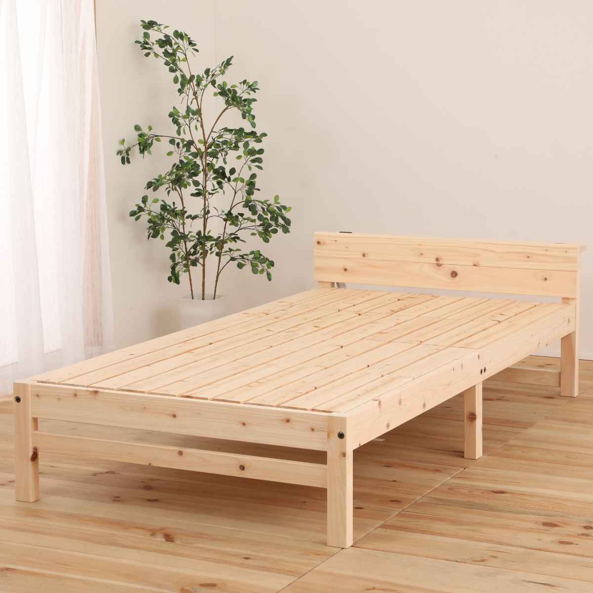 ■すのこベッド シングル 棚コンセント付 国産ひのき 天然木 日本製 ( 国産 ひのき すのこ ベッド 木製 シングルベッド 宮棚 枕元 棚 コン