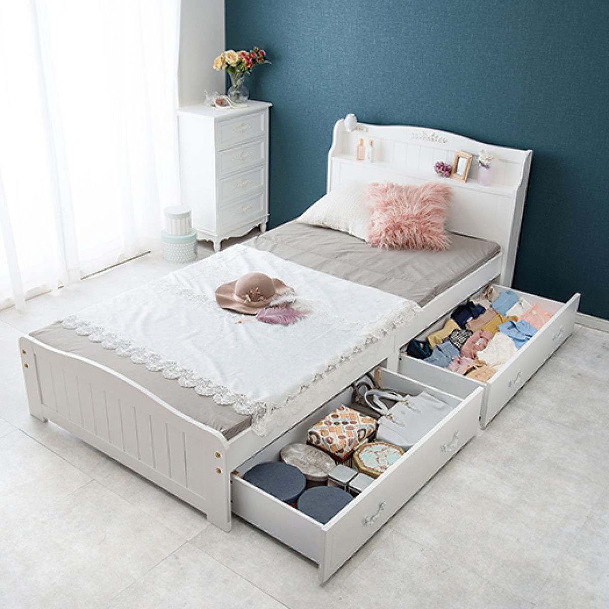 ■収納付きベッド 小さめ 姫系 ショートセミシングル すのこ ( ベッド 収納付 引出し2杯 コンセント付 寝具 ベット ベッドフレーム 引出し
