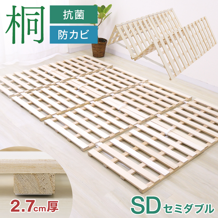 ■すのこベッド セミダブル 4つ折り すのこマット 極厚2.7cm 折りたたみ すのこ ベッド 湿気 カビ 除湿 対策 コンパクト ベッドフレーム 桐