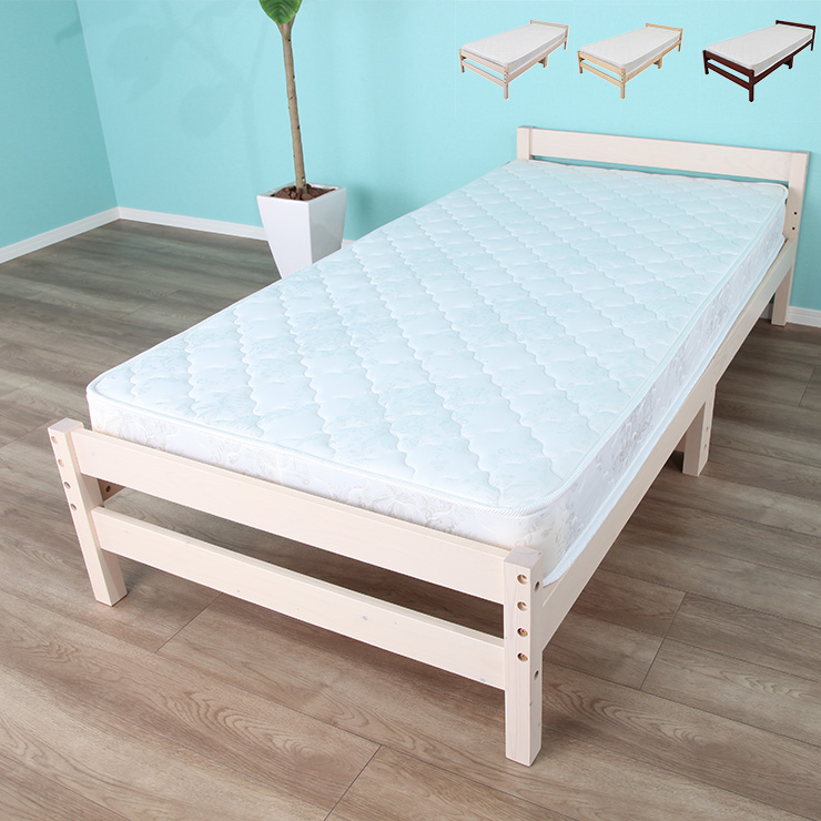 ■セミダブルベッド 白 ホワイト 天然木 すのこ ベッド ボンネルコイルマットレス付 白 ホワイト ヘッドレス 高さ調整 セミダブルベッド
