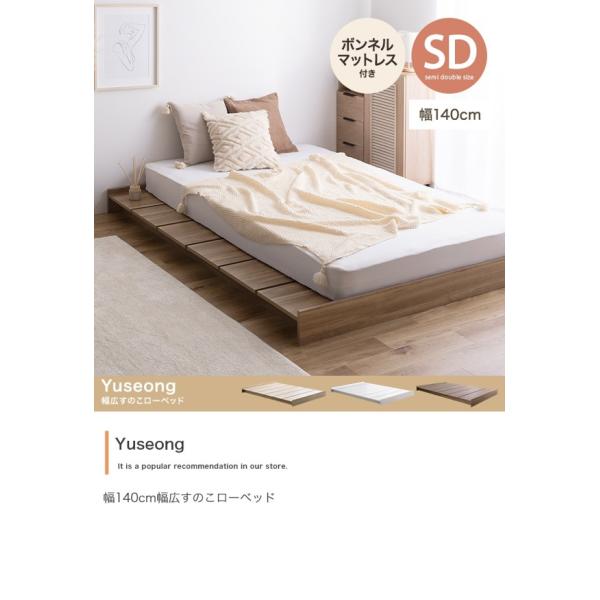 ■ベッド セミダブル ボンネルコイルマットレス付きセット ローベッド ロータイプ すのこ 宮なし 木製 フロア おしゃれ 一人暮らし Yuseong