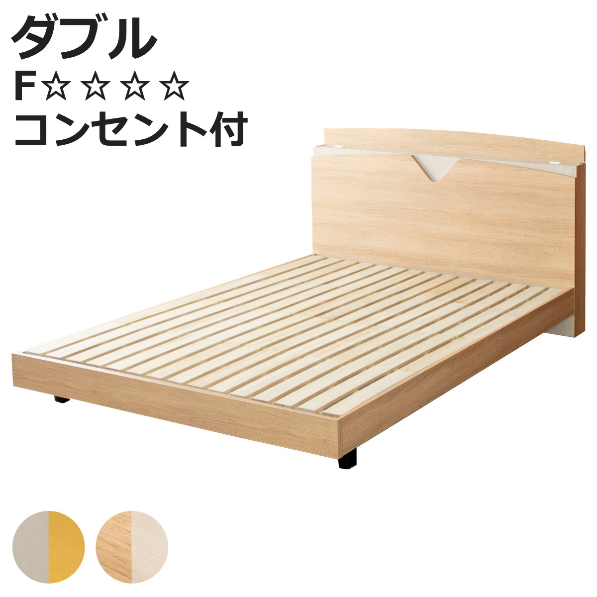 ■デザインベッド ダブル すのこ板 AYAMI ツートン 日本製 Apel ( ベッド すのこ コンセント付 ベッドフレーム ロータイプ フロアベッド