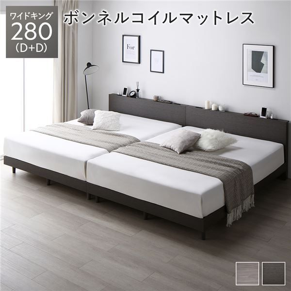 ■ベッド ワイドキング 280(D+D) スレートグレー ボンネルコイルマットレス付き 連結 すのこ 宮付 コンセント付 組立品 【北海道・沖縄・離