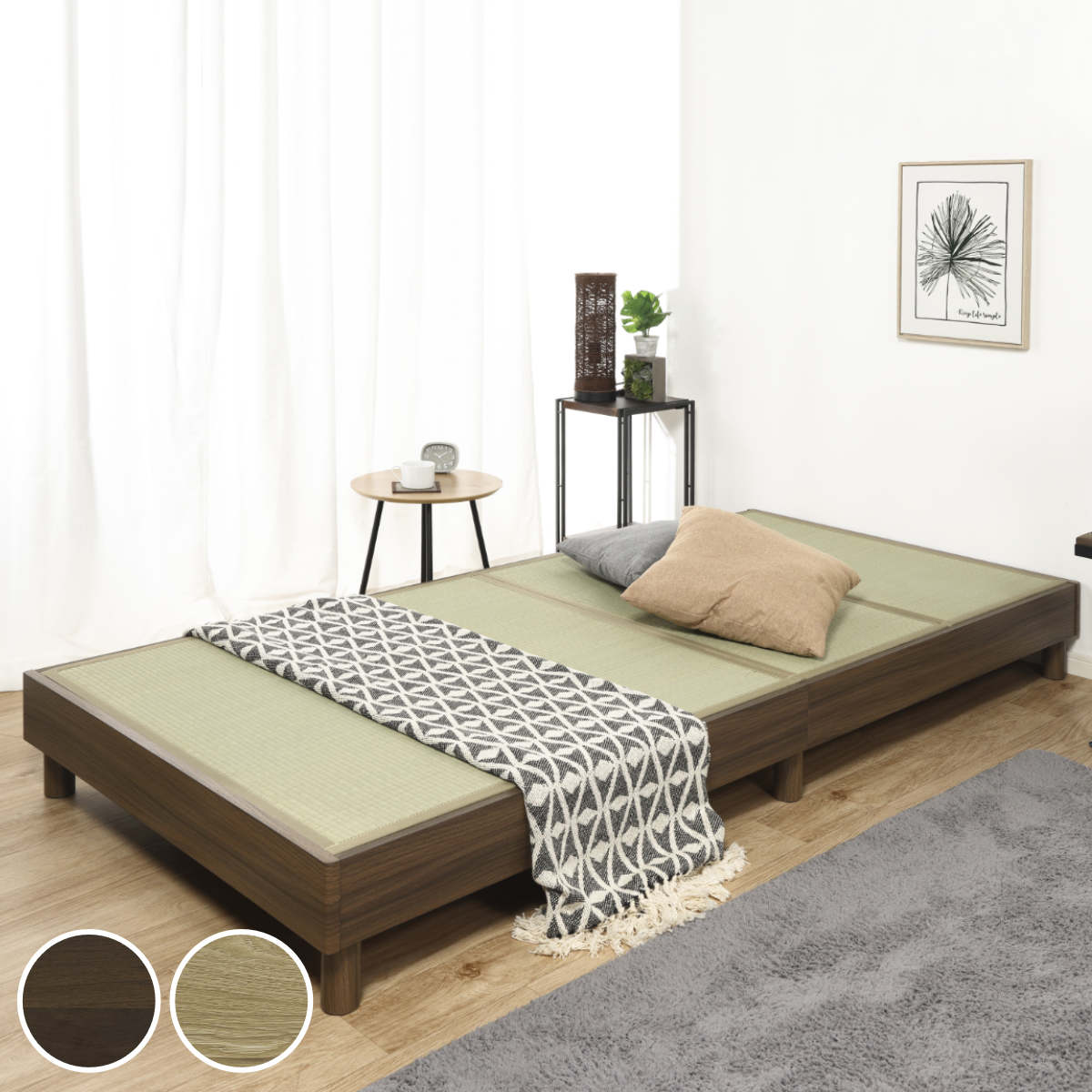■畳 ベッド ワイドキング 220(S+S) ブラウン 生成り 目積織 畳マット付き 3段階 高さ調整可 すのこ 連結 4つ折りマット 組立品 【北海道・