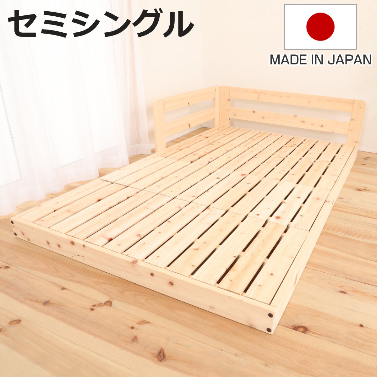 ■セミダブルベッド 日本製 国産 すのこ ベッド 繊細すのこタイプ 海外製マットレス付き 連結 ひのき 天然木 低床