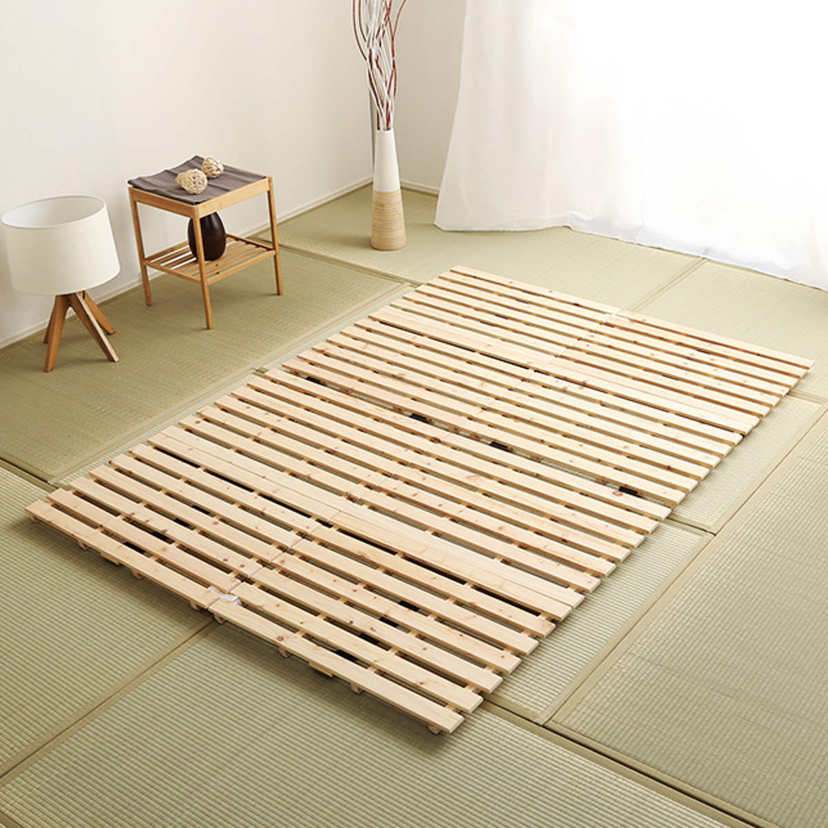 軽量4つ折りすのこ■床に敷くだけで通気性UP■頑丈構造でしっかり支える■4つ折りでコンパクトに収納■通気性を格段にUP!布団やマットレスの下に敷くだけで嫌な湿気を逃がす。■天然木 桐仕様天然の防虫、断熱、調湿効果でさらに快適。■16本の桟使用で頑丈しっかりと荷重を支える安心設計。■コンパクトな4つ折りタイプ省スペースに収納可能で来客用に便利。・室内干しも簡単お部屋で布団を干せる固定テープ付き。■連結テープでつなげて寝られる隙間なく固定し家族全員でゆったり寝られる連結ベッドへ。・お子さまも安心 低ホルムアルデヒド仕様無塗装の天然桐材を使用。子どもでも安心の品質。■商品スペック■サイズシングル:(約)幅100x長さ195〜210x2.5cmセミダブル:(約)幅120x長さ195〜210x2.5cmダブル:(約)幅140x長さ195〜210x2.5cm■材質 天然木(桐)■生産国 中国■梱包サイズ・重量シングル:(約)52x23cmx54cm・6kgセミダブル:(約)52x23x64cm・7kgダブル:(約)52x23x74cm・8kg※各サイズ・重量は概算です。