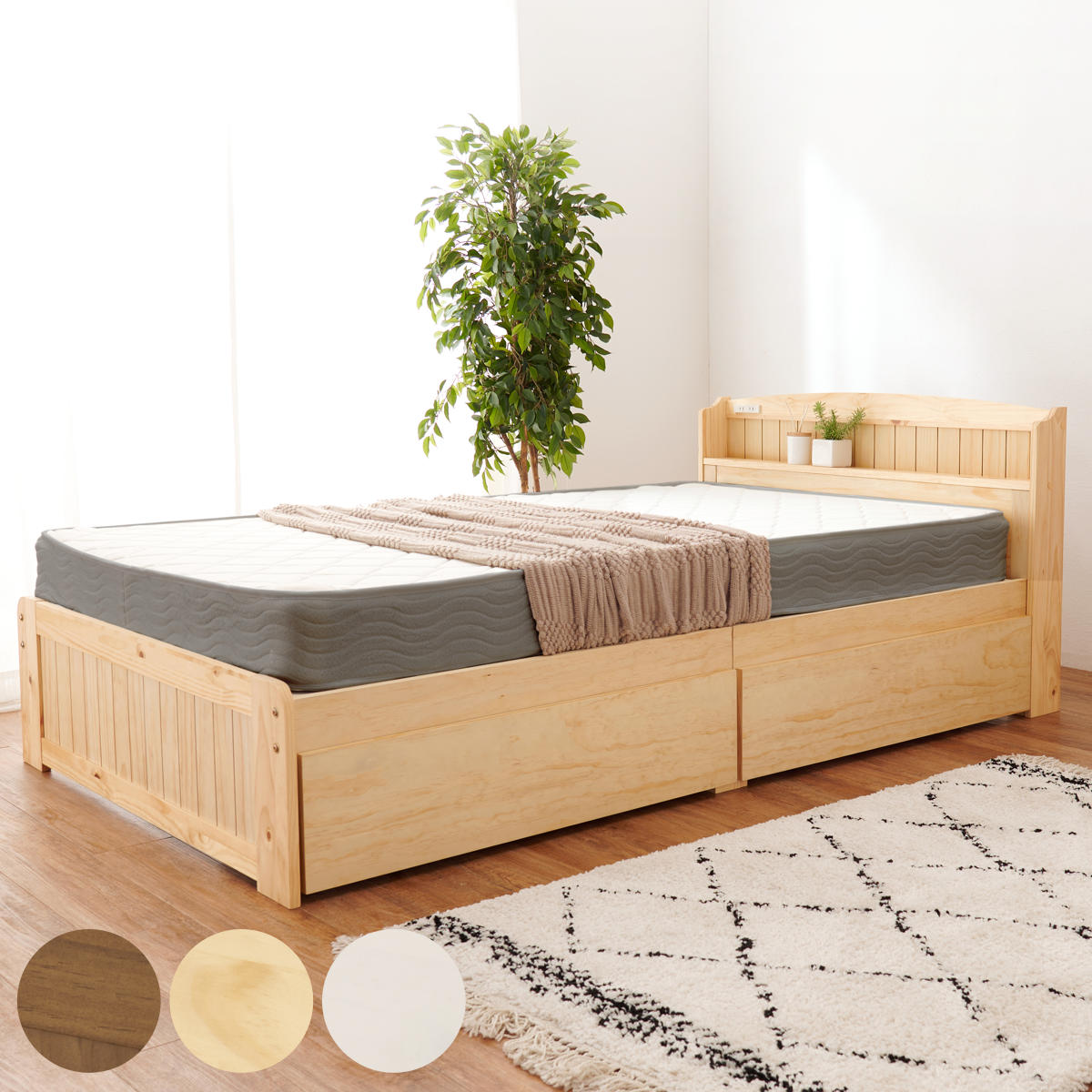■商品説明 ●天然木の温もりあふれるカントリー調すのこベッド ●床面高さが3段階に変えられ、床面下に大容量収納が可能な天然木すのこベッド。 ●木の温もりを感じられる柔らかなパイン材を使用。自然の木の香りでリラックスできます。 ●床下は最大51cmもある脚長タイプで、ベッド下を大量収納スペースとして有効活用できます。 ●衣装ケースや大型のキャリーバッグなどの収納に、新生活や一人暮らしのワンルームのお部屋にもおすすめです。 ●ヘッド部には2口コンセントが付いた宮棚付きで、目覚まし時計・スマホの充電・加湿器や照明の設置に。 ●床板は通気性に優れたスノコ板、汗や湿気を逃がして、布団やマットレスを清潔に保ちます。 ●大柄な男性でも安心して使える耐荷重150kgの頑丈設計です。 ■商品詳細 カラー:ライトブラウン/ナチュラル/ホワイトウォッシュ ベッドサイズ:セミダブル サイズ(約):幅124×奥行211×高さ99×床面高52/57/62cm 素材:主材:天然木(パイン材) 組立:お客様組み立て式